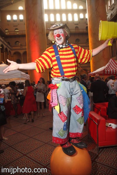 We really brought the theme to life with our best circus performers. We had a fire eater and a carnival barker greeting guests as they arrived. Inside, we had three clowns, a juggler and two stilt walkers. Special thanks to Tony Brown who generously shared his great photos of our performers.